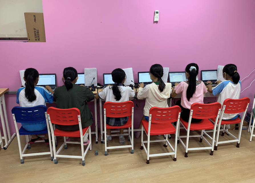 When I brought my class down, the scene was one of successfully controlled chaos. Kids were chatting happily, teachers were milling about, and a walk down the hall was a minefield of tiny ankles and oblivious 4-year olds. Our fearless (and I don’t use that term flippantly) de-facto principal, Teacher Brittany, led things off by spending 5 minutes getting the kids to sit silently, going over rules and announcements, and sharing a powerpoint about school pride. FALSE. She spent the first 5 minutes running around with her microphone and saying hi to kids, playing a song, getting everyone to dance, and making it clear how genuinely happy she was, her mask failing to hide her smile. Next came a spelling song led by Teacher Colin. He bounced around chanting this catchy rhyme while one student from each class was in charge of spelling a word, followed by the whole school repeating the spelling. (Spelling bees are big here.) Teacher Evan the all-star forgot to write down what word was assigned to him but luckily, Miki the actual all-star had no problem spelling “put, P-U-T, put” (to which we all responded “goooooood job!”).